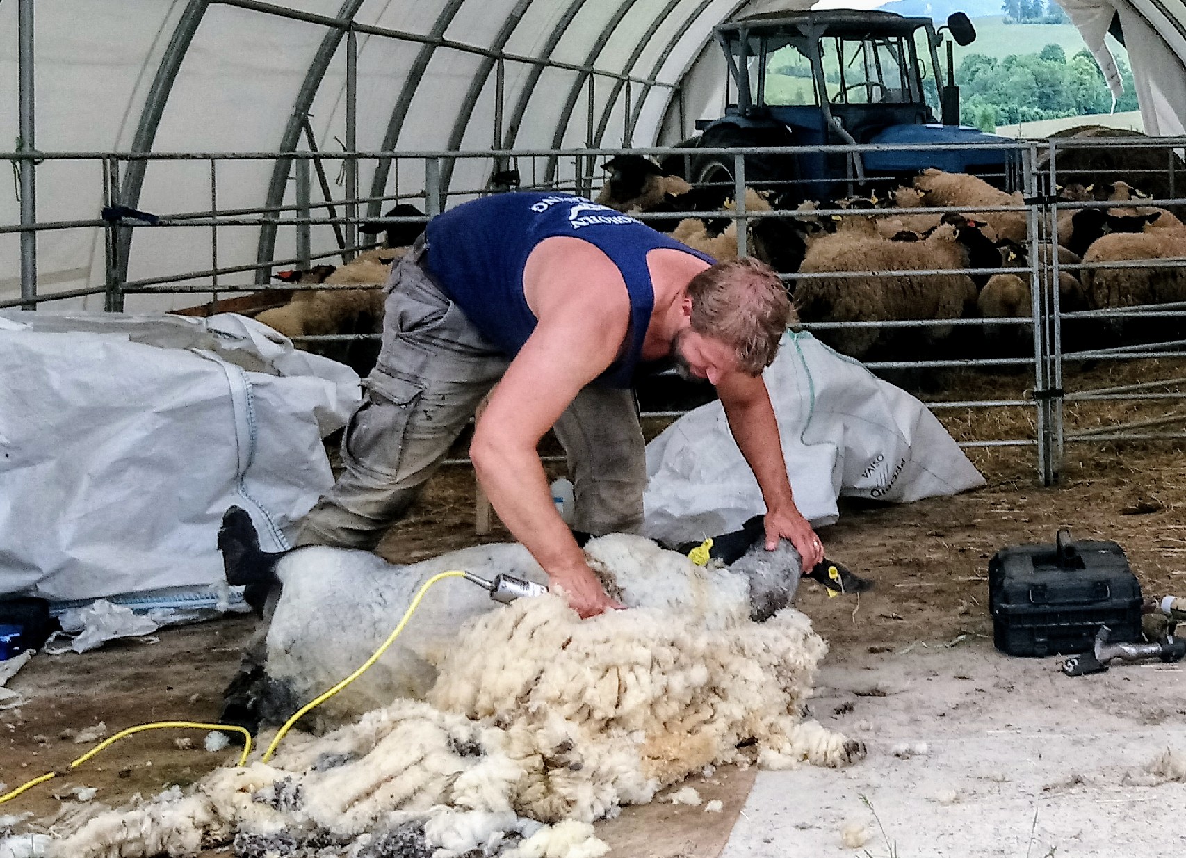 V den stříhání musí být suché. Mokré ovečky kloužou, strojek může mít problém vlnu ustřihnout a vzniká tak nebezpečí zranění.